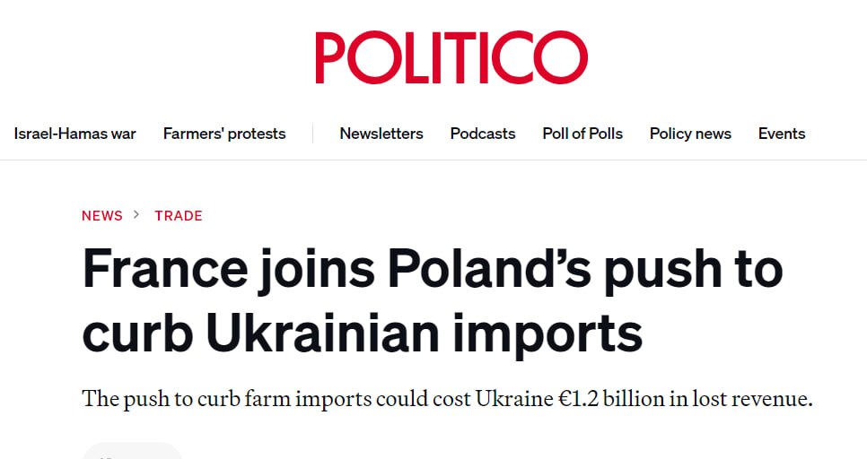 По данным Politico, ограничения, на которых настаивают Париж и Варшава, могут обойтись украинской экономике 1,2 млрд евро в виде потерянных доходов.