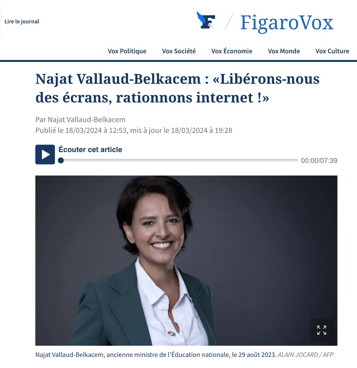 Ограничить объем доступного человеку интернета призывает бывший министр образования Франции, а ныне директор разных некоммерческих организаций Наджат Валло-Белькасем.