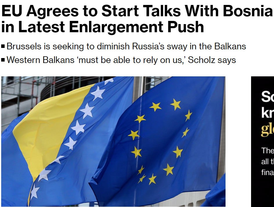 Евросоюз начал диалог о членстве с Боснией и Герцеговиной для уменьшения влияния РФ на Балканах - Bloomberg