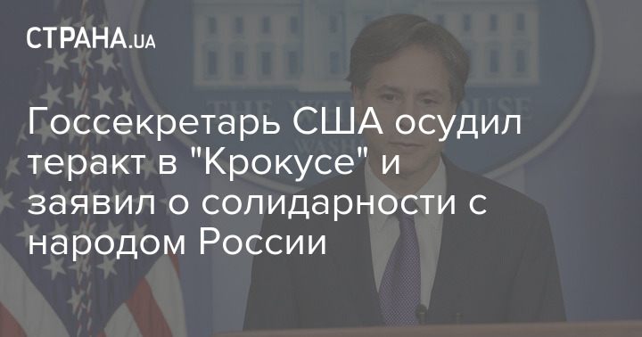 Госсекретарь США Энтони Блинкен осудил теракт на концерте в "Крокусе" и заявил о "солидарности с народом России".