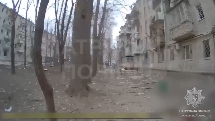 Запись с нательной камеры своего сотрудника опубликовала Патрульная полиция Харьковской области. Видео взрыва с одной из улиц города показали местные телеграм-каналы.