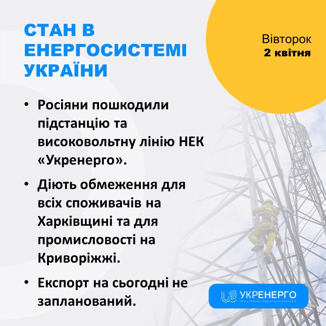 РФ повредила подстанцию и высоковольтную линию "Укрэнерго".