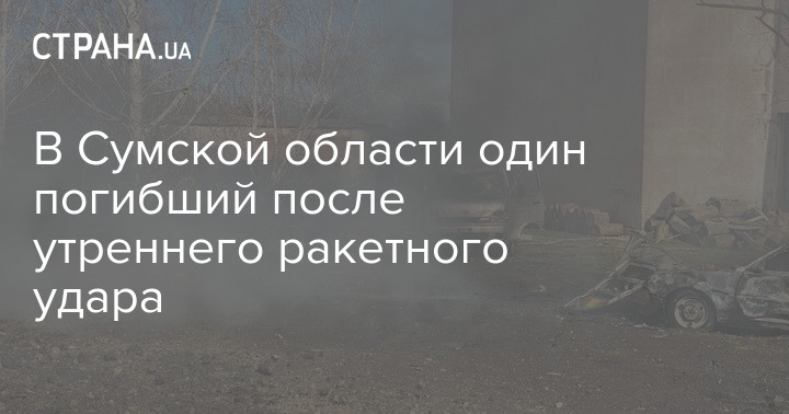 В среду, 3 апреля, в Сумской области один погибший после утреннего ракетного удара по Краснопольской громаде.