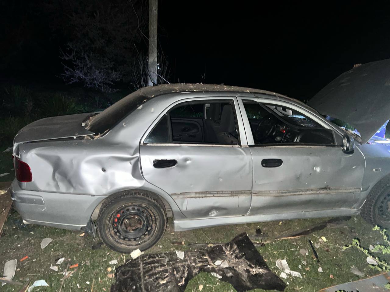 В Петриковской громаде обломки российской ракеты повредили два дома, автомобили и линию электропередач.