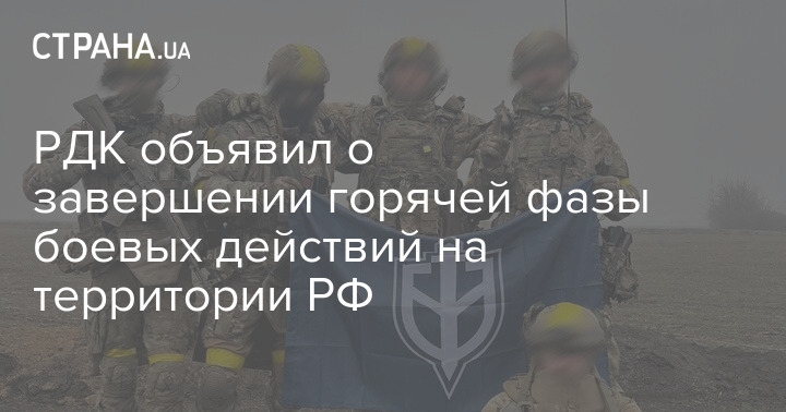 "Русский добровольческий корпус" заявил о завершении горячей фазы боевых действий на территории РФ. Об этом написали представители РДК в своем Telegram-канале.