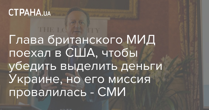 "Попытка Дэвида Кэмерона убедить Дональда Трампа разрешить Конгрессу США выделить военную помощь Украине на сумму 60 миллиардов долларов, похоже, провалилась после того, как министру иностранных дел Великобритании даже не разрешили встретиться со спикером Конгресса Майком Джонсоном, который теоретически мог бы поставить пакет на голосование", – начинается статья.