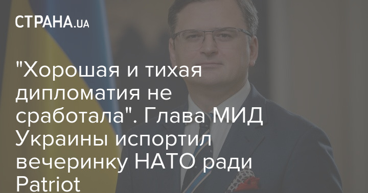 Министр иностранных дел Дмитрий Кулеба хочет получить от Запада дополнительные простаивающие батареи ПВО "Patriot" и больше не будет просить вежливо.