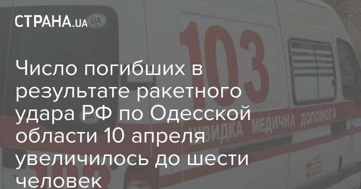 Число жертв в результате ракетной атаки РФ по Одесскому району вечером 10 апреля увеличилось до шести человек. Об этом сообщает Одесская областная прокуратура.