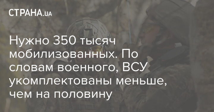 Нужно 350 тысяч мобилизованных. По словам военного, ВСУ укомплектованы меньше, чем на половину