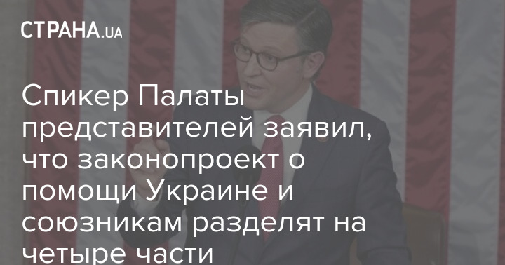 Спикер Палаты представителей Конгресса США Майк Джонсон заявил, что Палата разделит законопроект о помощи Украине и союзникам на четыре части.