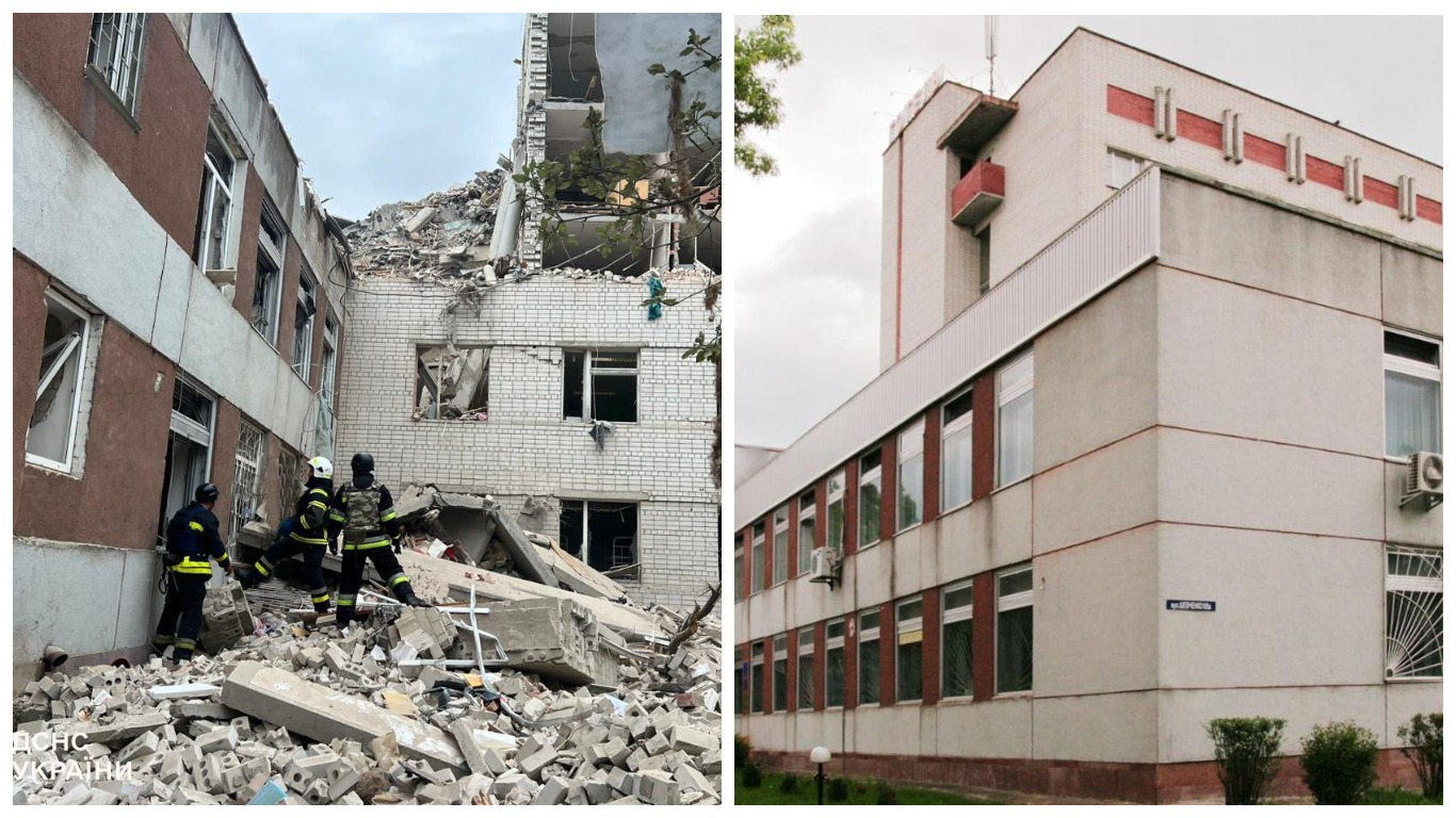 Удар пришелся по одному из центральных районов города. На опубликованных президентом Зеленским снимках было разрушенное здание гостиницы "Профсоюзная".