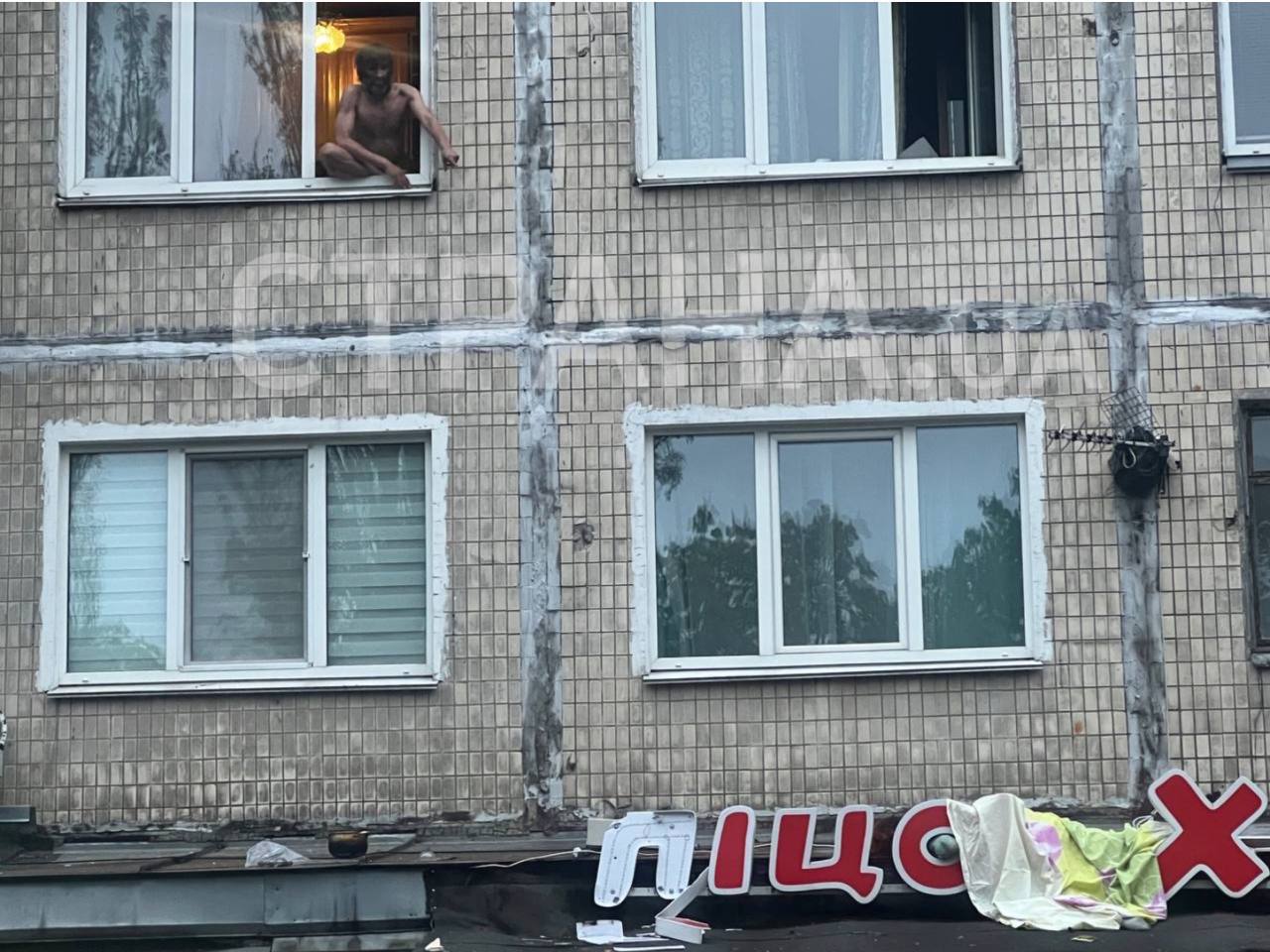 Полиция также задержала мужчину, который полностью голый сидел на окне и, по словам очевидцев, хотел покончить жизнь самоубийством.