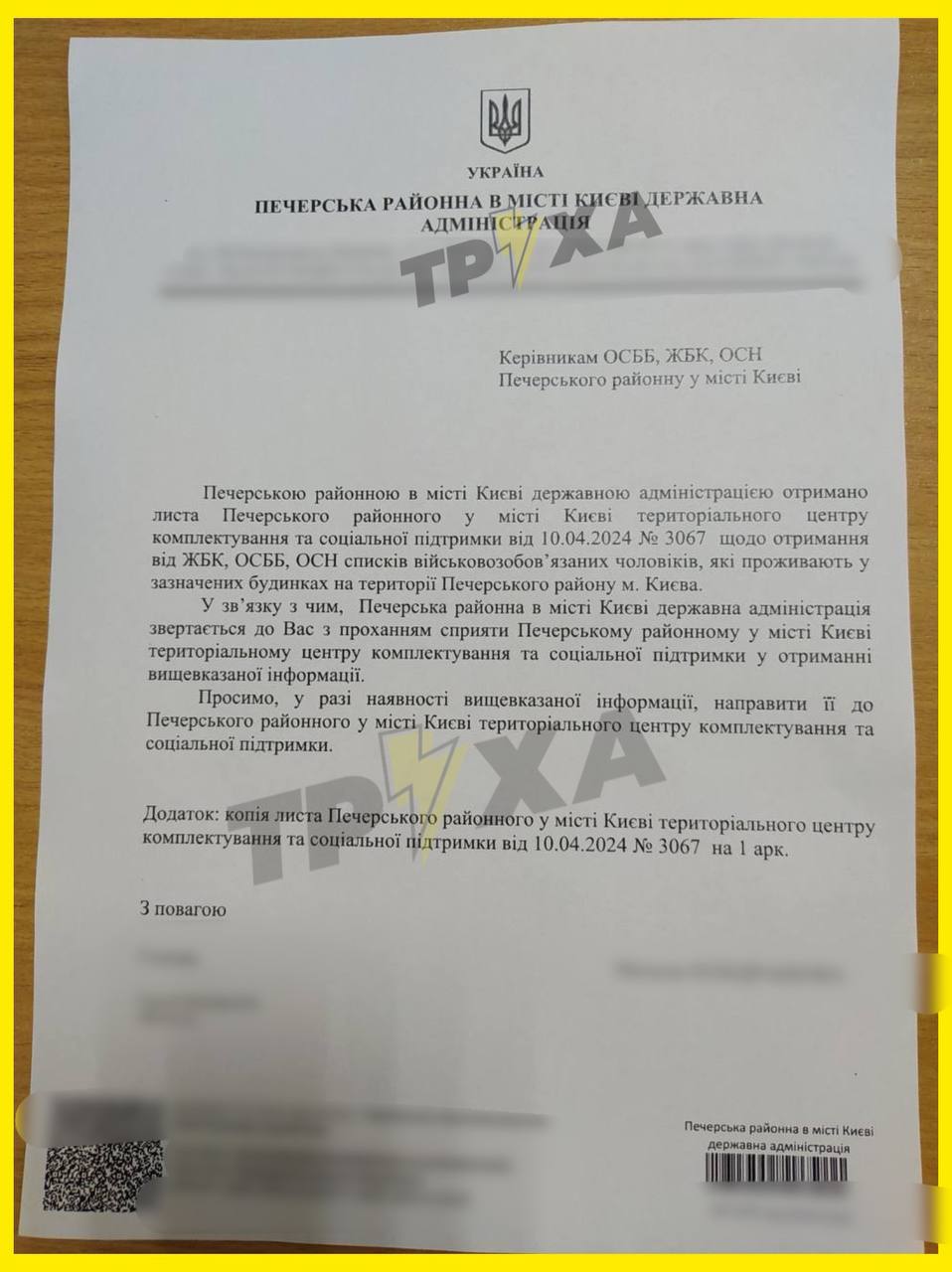 Собранную информацию просят отправлять в Печерский ТЦК.