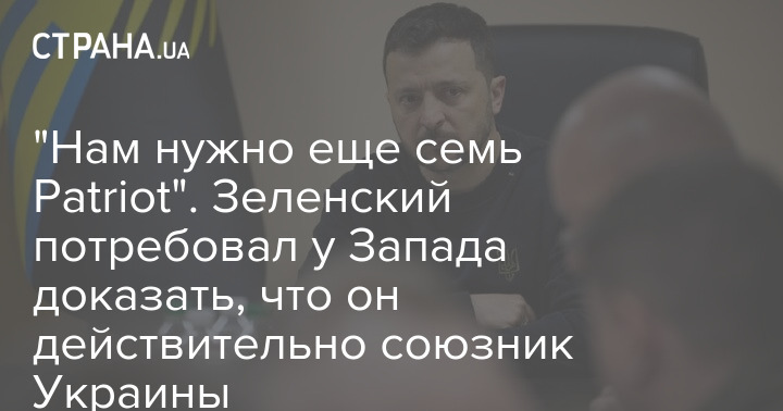 "Нам нужно еще семь Patriot". Зеленский потребовал у Запада доказать, что он действительно союзник Украины