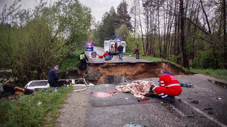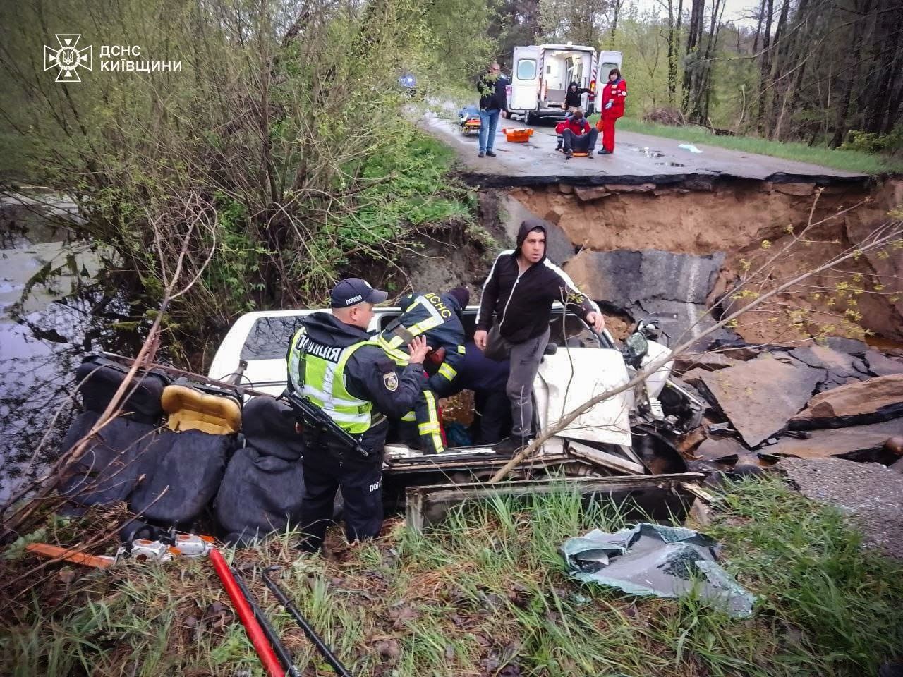 Утром 22 апреля в Киевской области микроавтобус провалился под землю. Погибли два человека, пострадали семеро.