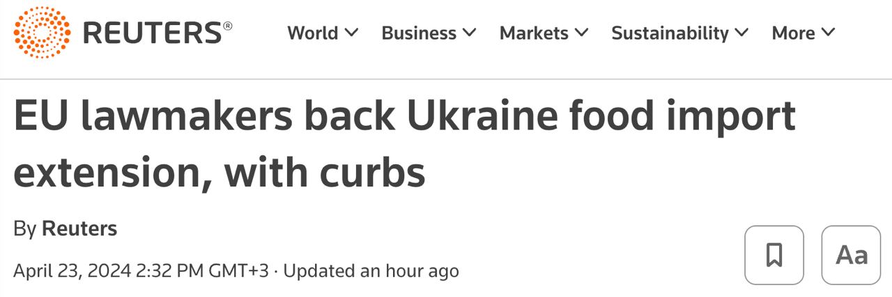 По словам европейских дипломатов, из-за этих ограничений, которые ввели после протестов европейских фермеров, Украина получит от экспорта в ЕС на 331 миллион евро меньше, чем в 2023 году.
