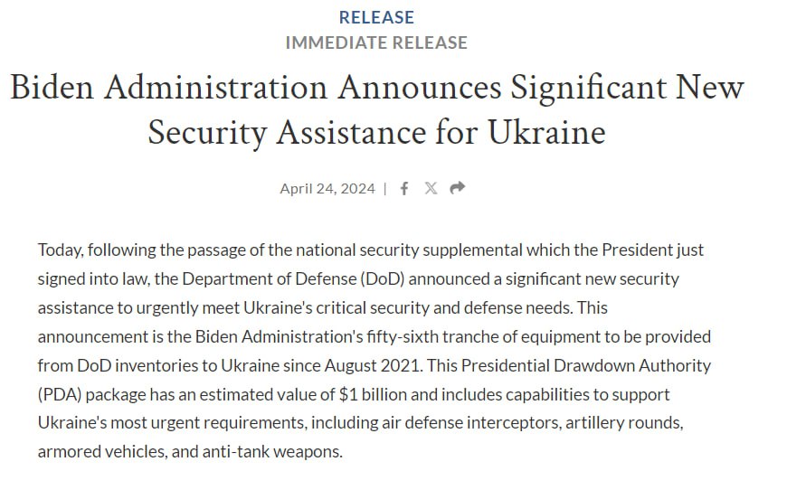 18:36 Дальнобойные ракеты ATACMS отдельно в новом пакете помощи от Штатов не обозначены. Хотя ранее о том, что они там будут писали западные медиа.
