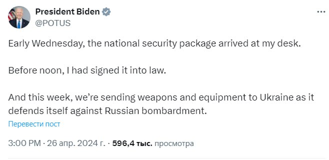 Об этом сообщил в Х президент США Джо Байден.
