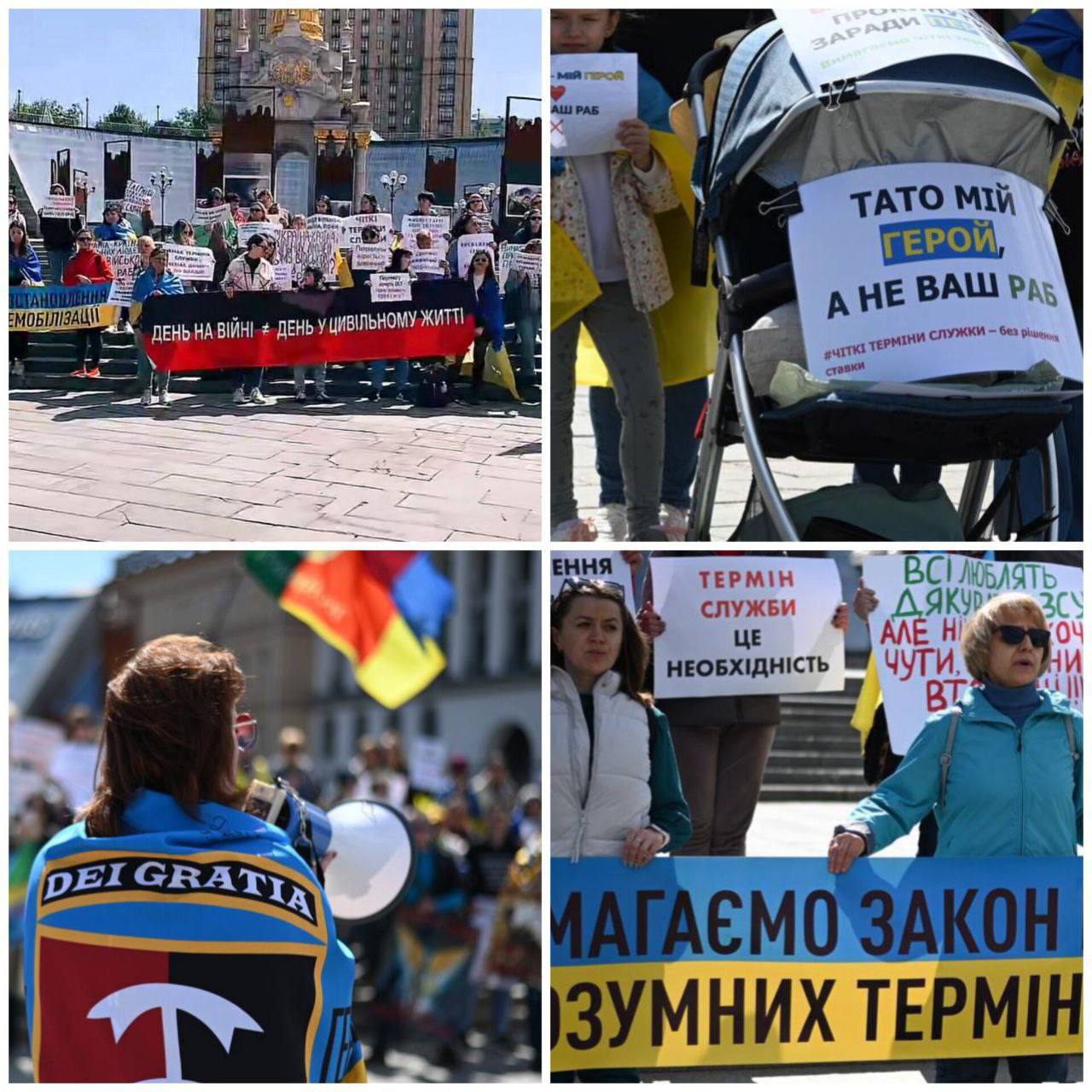 Жёны, матери и дети служащих в ВСУ вышли с лозунгами, осуждающими отмену демобилизации и требованиями установить чёткие сроки службы без решения Ставки.