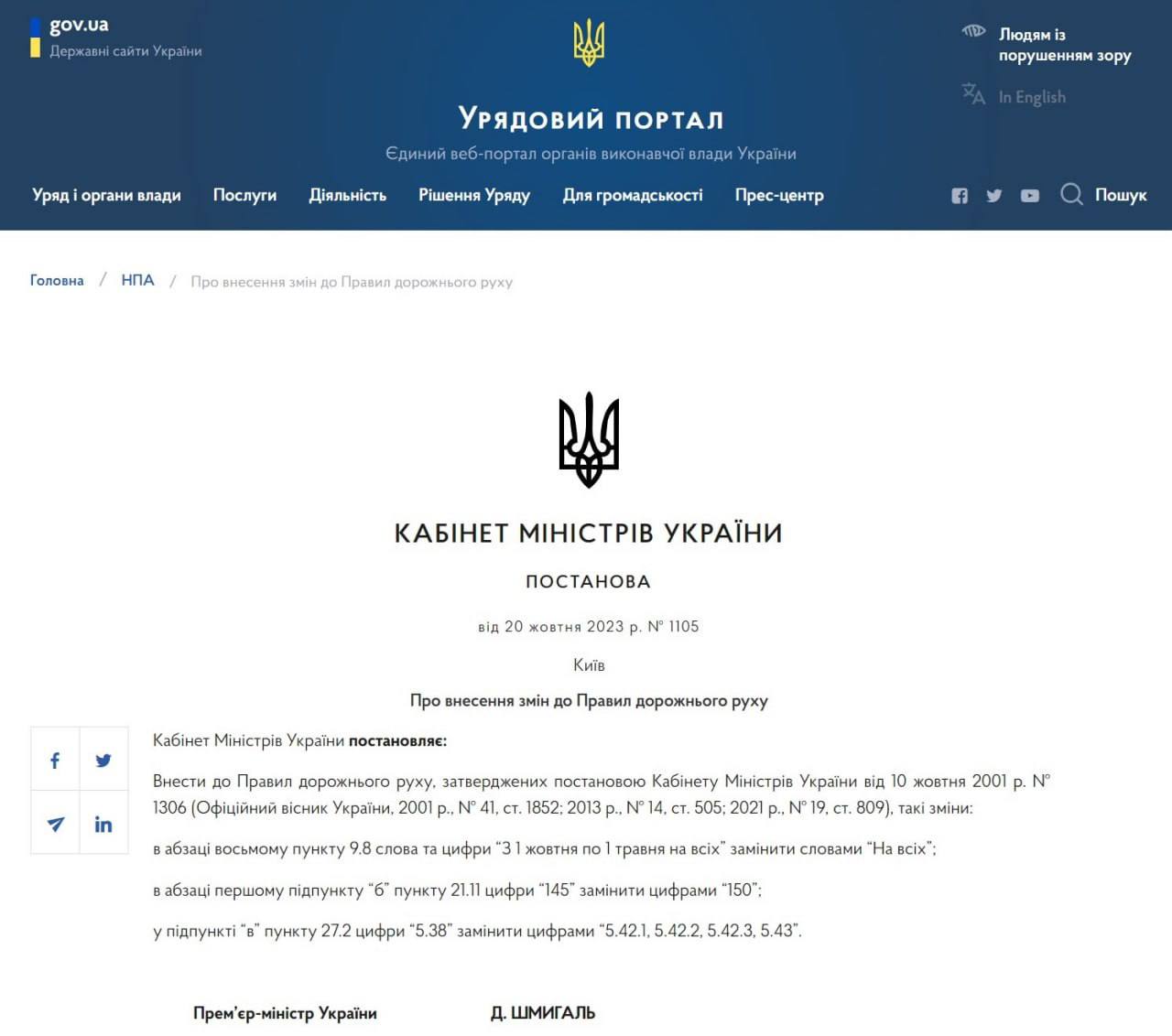 В Украине с 1 мая ближний свет фар вне населенных пунктов нужно включать всегда. Соответствующие изменения в ПДД были внесены постановлением Кабмина №1105 от 20 октября 2023 года.