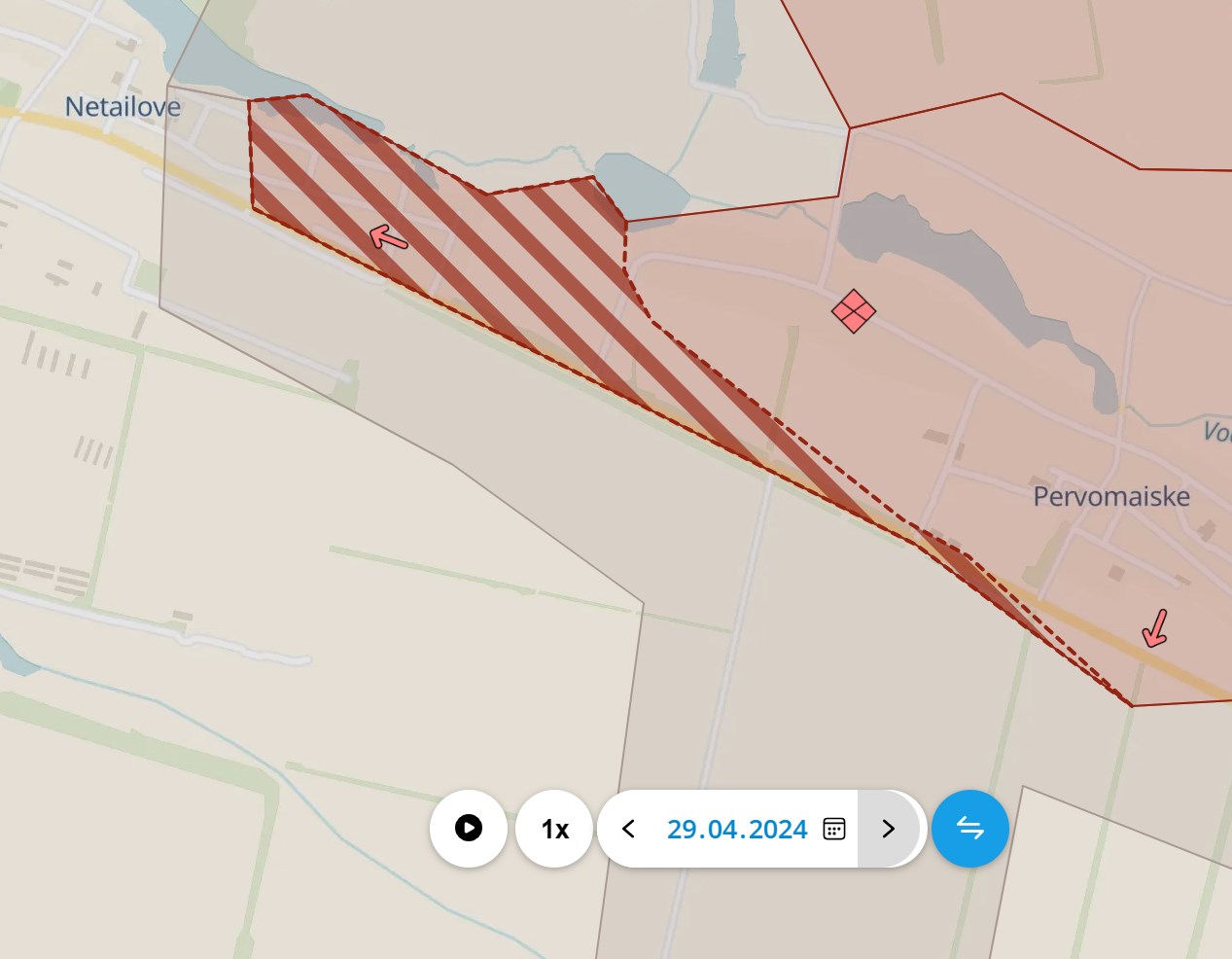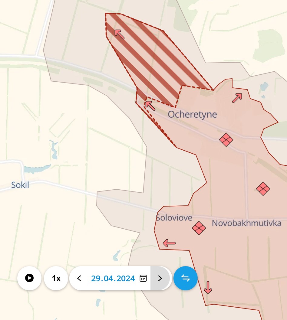 Судя по карте, это движение в сторону трассы Константиновка - Покровск, которая среди прочего является крупнейшей дорогой, ведущей с "большой земли" в Часов Яр.