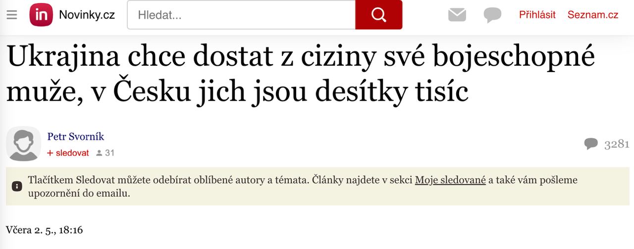 Чехия не поддерживает украинских мужчин, которые пытаются избежать мобилизации.