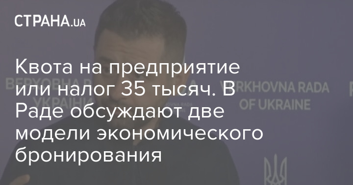 Верховная Рада Украины рассматривает две модели экономического бронирования.