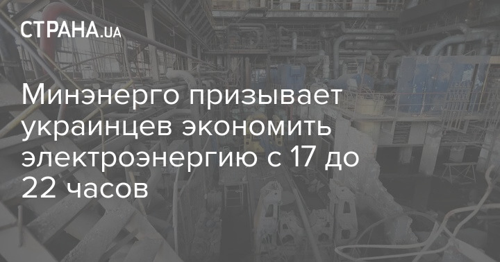 Минэнерго призывает украинцев экономить электроэнергию с 17 до 22 часов