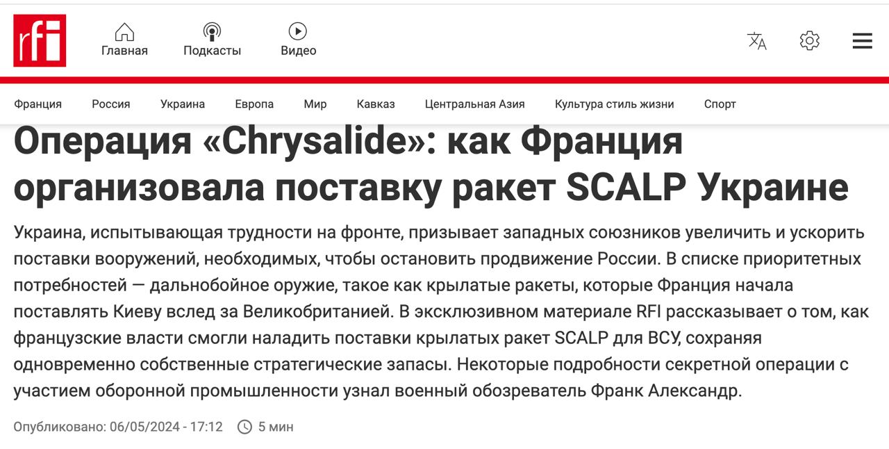 11.35 Франция передала Украине дальнобойные ракеты SCALP, которые подлежали утилизации, сообщает RFI.