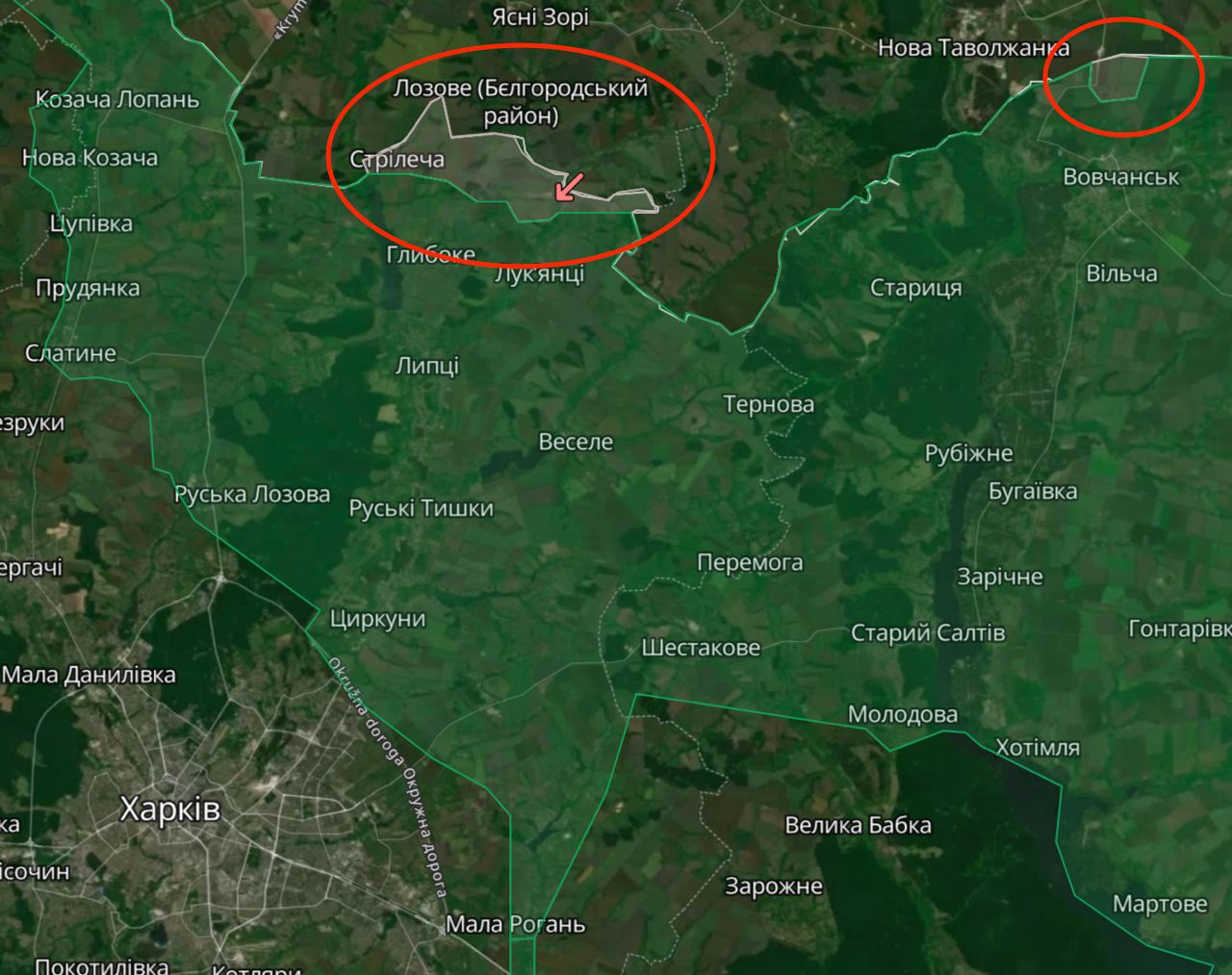 Оно началось ночью на двух участках: в направлении непосредственно Харькова, в селах Стрелка-Красное-Пыльная-Борисовка, а также в сторону Волчанска. Сейчас они оба на карте DS помечены серой зоной.