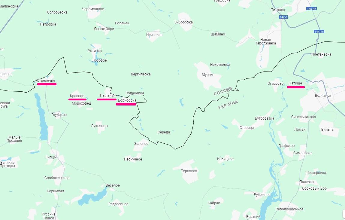 А именно села Стрелечье, Красное, Пыльная и Борисовка. Также небольшое продвижение есть на втором направлении удара - в районе Волчанска.
