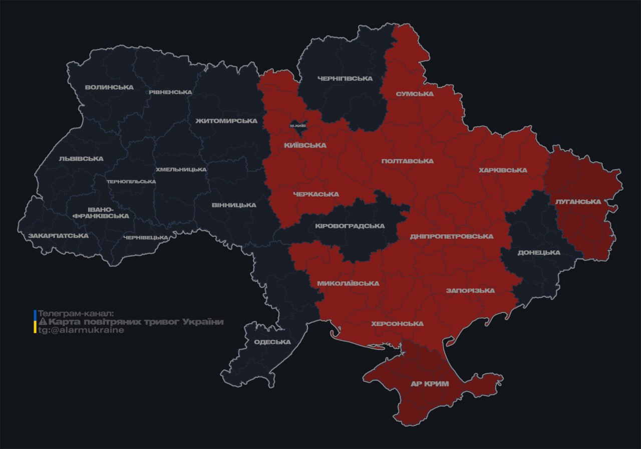 14.55 Воздушная тревога по всей Украине.