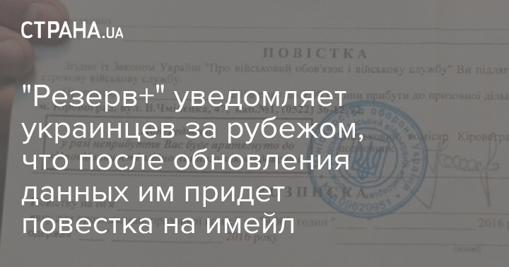 Приложение "Резерв+", которое позволяет обновить данные военнообязанных, уведомляло, что повестки будут присылать по электронной почте. Эта функция касается украинцев, которые проживают за границей.