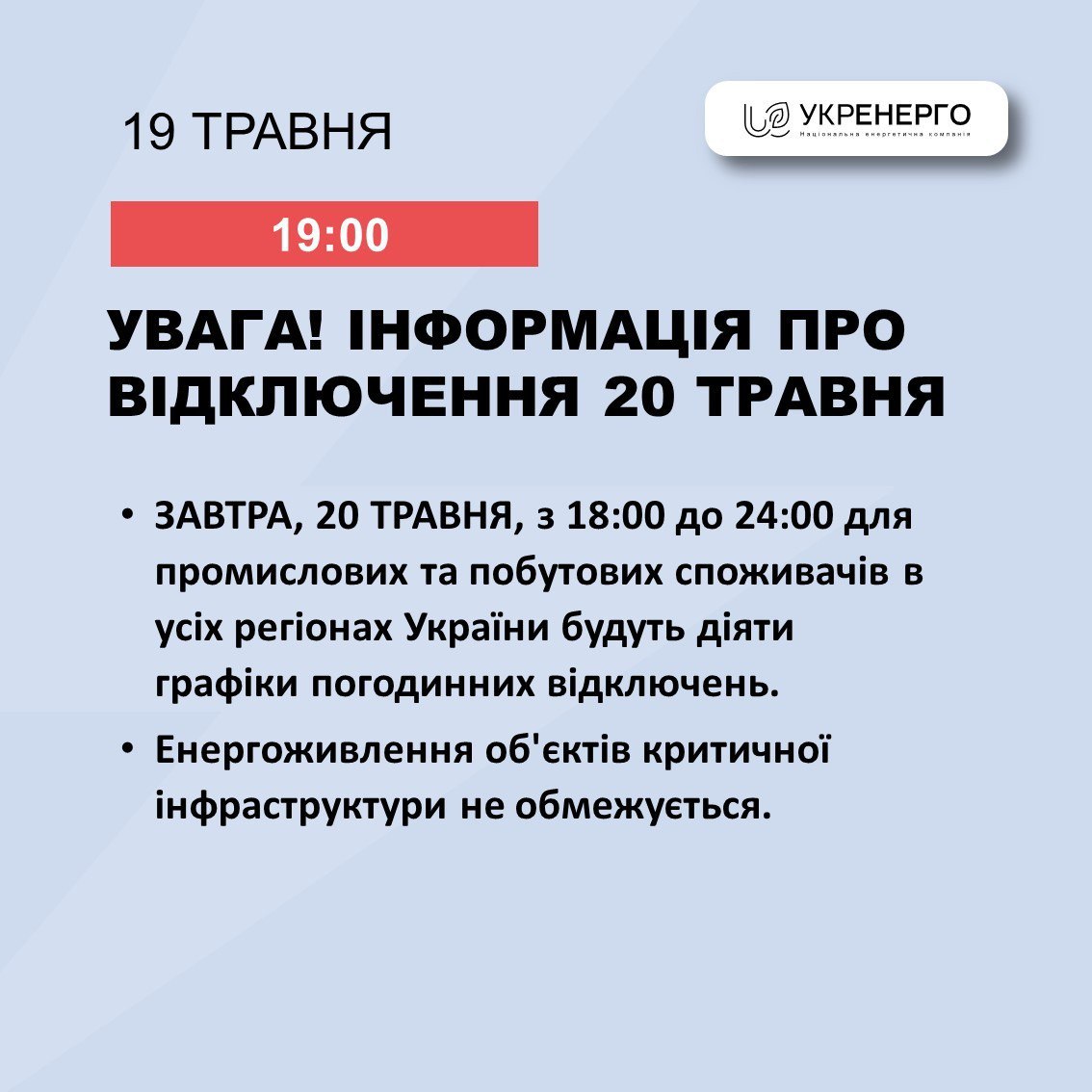 19:26 Завтра в Украину возвращаются повсеместные отключения света.
