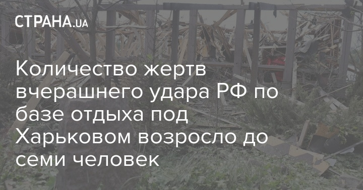 Число погибших в результате удара российских оккупантов по базе отдыха в Черкасской Лозовой Харьковской области увеличилось до семи человек. Пострадали - 28 человек.