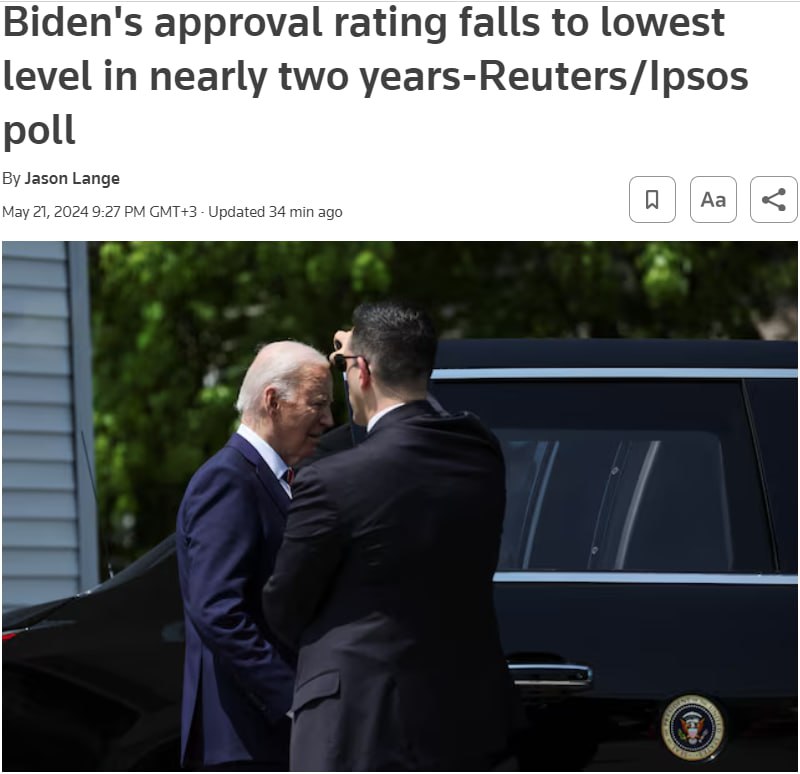 Рейтинг общественного одобрения президента США Джо Байдена в этом месяце упал до самого низкого уровня почти за два года, став самым низким показателем за все время его президентства.