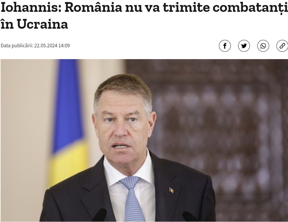 "Румыния не будет отправлять бойцов в Украину, это простая дискуссия, и я думаю, что на этом она исчерпывается", – сказал он.
