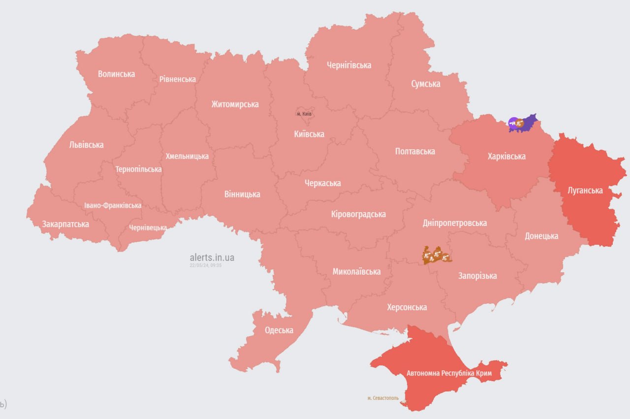09:37 Вся Украина в зоне воздушной тревоги из-за взлета МиГ 31К в России.