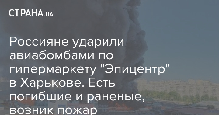 Днем в субботу, 25 мая, россияне ударили двумя авиабомбами по строительному гипермаркету "Эпицентр" в Харькове. Есть погибшие, раненые и пропавшие без вести, возник мощный пожар.