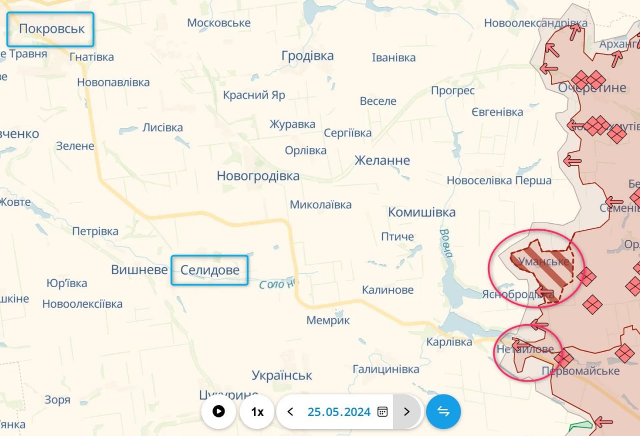 Вчера паблик Deep State сообщил о потере Уманского на Авдеевском направлении. Власти Украины этого не подтверждали. Генштаб вчера кратко сообщал о штурмах в районе Уманского.