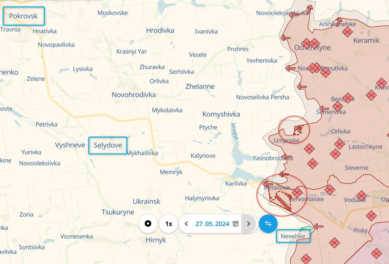Движение под Нетайлово потенциально угрожает позициям ВСУ южнее - около Невельского. Российские паблики пишут, что начались бои за соседнее село Карловка (там расположено крупное водохранилище).