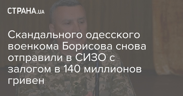 Бывшего главу Одесского ТЦК Евгения Борисова повторно отправили в СИЗО с залогом в 140 миллионов гривен.