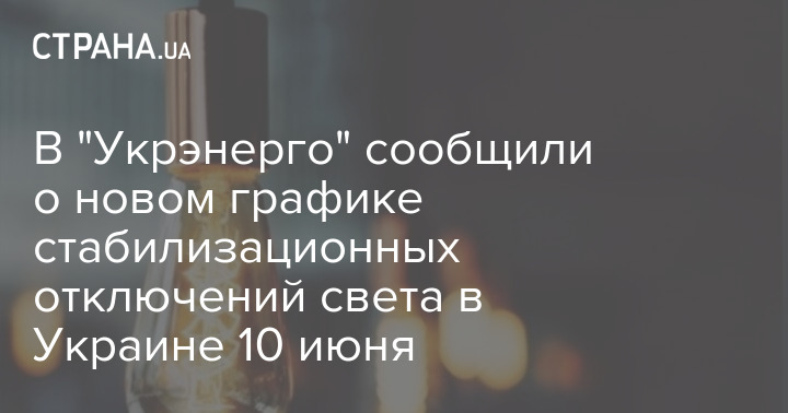 В понедельник, 10 июня, графики стабилизационных отключений света в Украине планируют применять с 16:00 до 22:00.