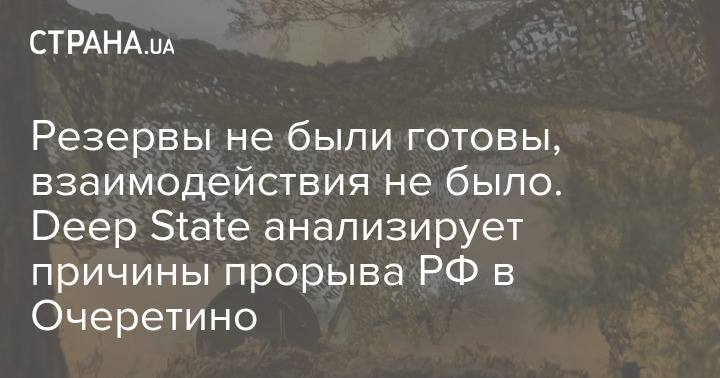 Резервы не были готовы, взаимодействия не было. Deep State анализирует причины прорыва РФ в Очеретино