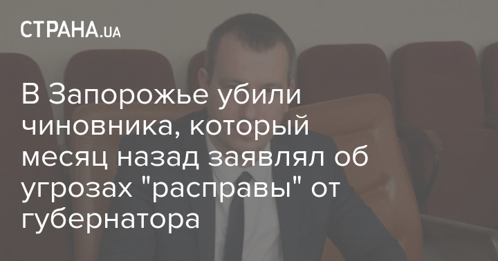 В Запорожье убили чиновника, который месяц назад заявлял об угрозах "расправы" от губернатора