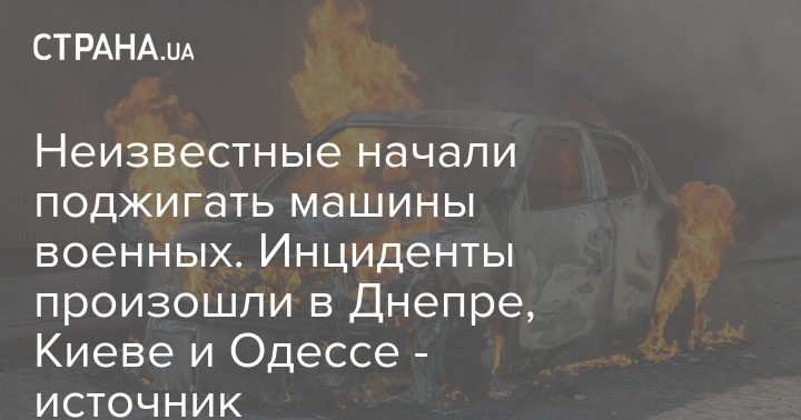 "Один случай произошел в Днепре. На автопарковке неизвестный облил бензином автомобиль Volkswagen, который находится на балансе ВСУ. Еще один случай произошел в Киеве в Шевченковском районе. В 22:40 неизвестный поджег микроавтобус Mercedes-Benz, который принадлежит военному. Третий случай зафиксирован в Одессе. Там также неизвестный поджег автомобиль Peugeot, который находится на балансе ВСУ", - рассказал источник.