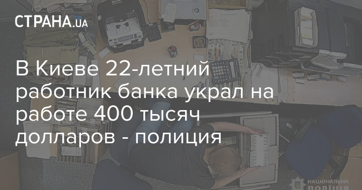 В Киеве 22-летний работник столичного банка вынес из учреждения 400 тысяч долларов. Об этом сообщает Национальная полиция.