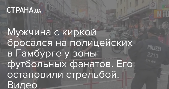 В немецком Гамбурге возле скопления болельщиков сборной Нидерландов на чемпионате Европы по футболу мужчина с киркой напал на полицейских. Правоохранителям пришлось открыть огонь и ранить нападавшего.