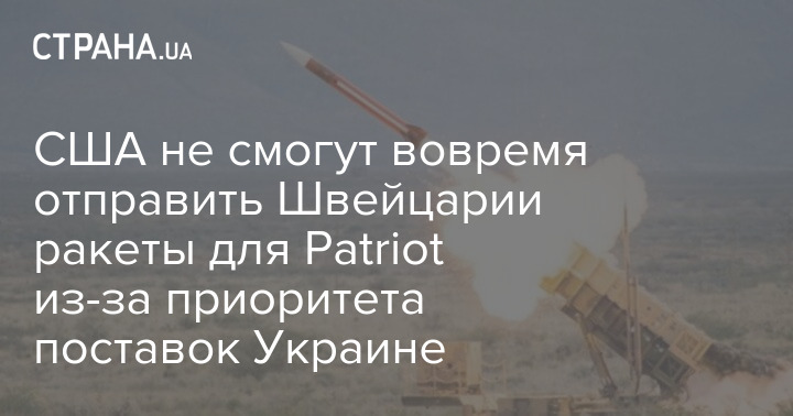 США не смогут вовремя отправить Швейцарии ракеты для Patriot из-за приоритета поставок Украине