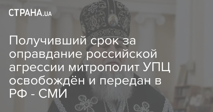 Получивший срок за оправдание российской агрессии митрополит УПЦ освобождён и передан в РФ - СМИ